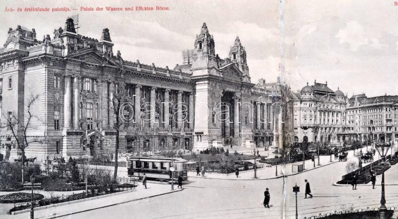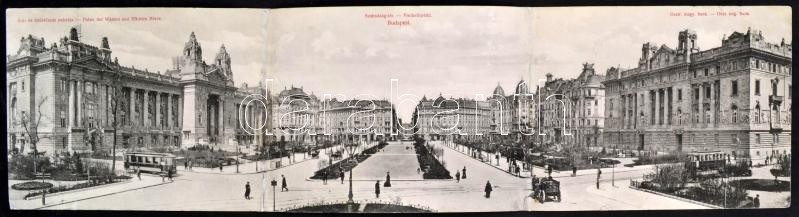 Leírás: cca 1900 Budapest, Szabadság tér, kinyitható panorámakép, szakadással, 54×14 cm
