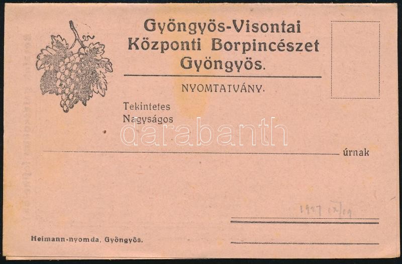cca 1900 Gyöngyös-Visontai Központi Borpincészet reklám nyomtatvány és... https://www.darabanth.com/hu/359-Gyorsarveres/359.0/Mutargy-papirregiseg-egyeb/Nyomtatvanyok~500030/cca-1900-Gyongyos-Visontai-Kozponti-Borpinceszet-reklam-nyomtatvany-es-arjegyzek~II2067524