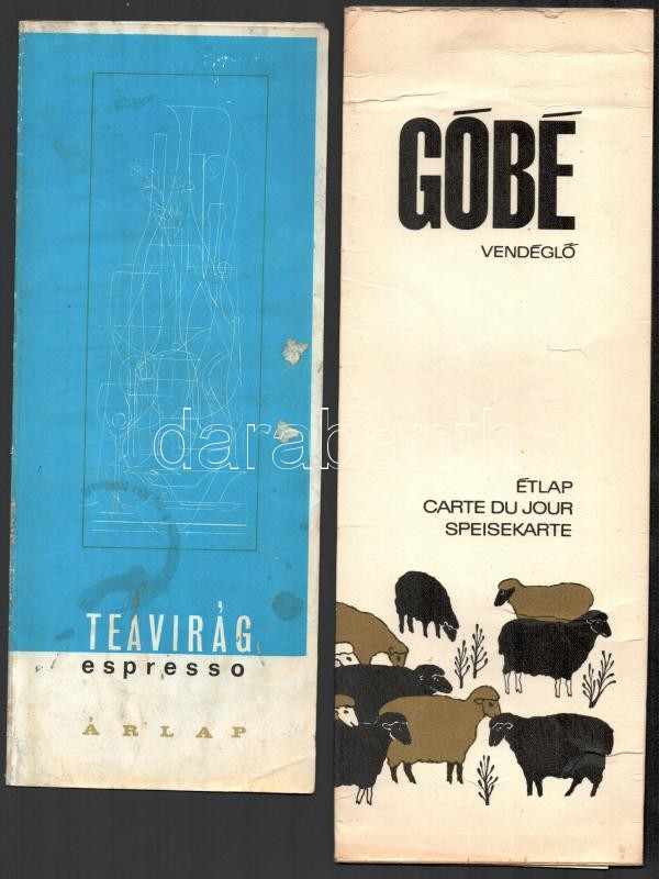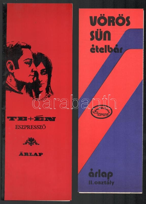 cca 1972-1978 5 db retró étlap. árlap, Utasellátó, presszók. https://www.darabanth.com/hu/359-Gyorsarveres/359.0/Mutargy-papirregiseg-egyeb/Nyomtatvanyok~500030/cca-1972-1978-5-db-retro-etlap-arlap-Utasellato-presszok~II2063034