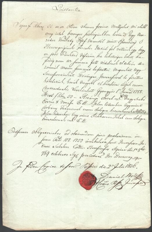 Leírás: 1836 Pest, Latin és magyar nyelvű okmány pénzügyekről, Esterházy herceg nevének említésével, viaszpecséttel