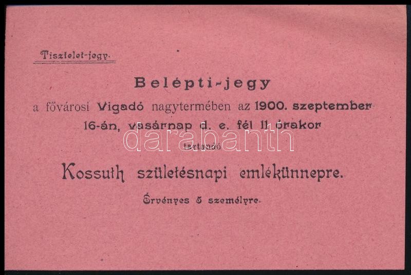 Leírás: 1900 Bp., Vigadó, belépőjegy a Kossuth születésnapja alkalmából rendezett emlékünnepélyre