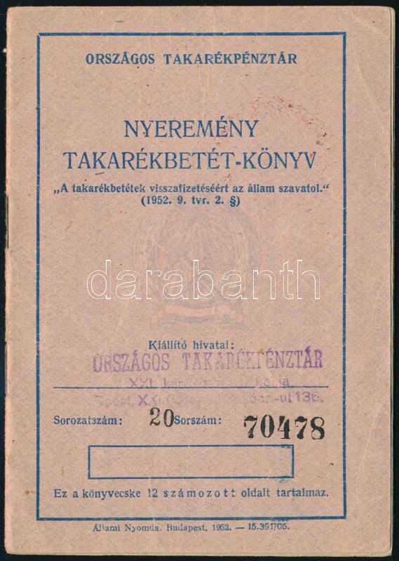 1953 Országos Takarékpénztár nyeremény takarékbetét-könyv és negyedik ... https://www.darabanth.com/hu/359-Gyorsarveres/359.0/Mutargy-papirregiseg-egyeb/Okmanyok~500018/1953-Orszagos-Takarekpenztar-nyeremeny-takarekbetet-konyv-es-negyedik-berkolcson-igazolC3~II2062216