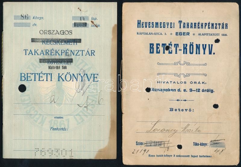 Leírás: 2 db takarékpénztári betétkönyv (Heves megye, Kecskemét)