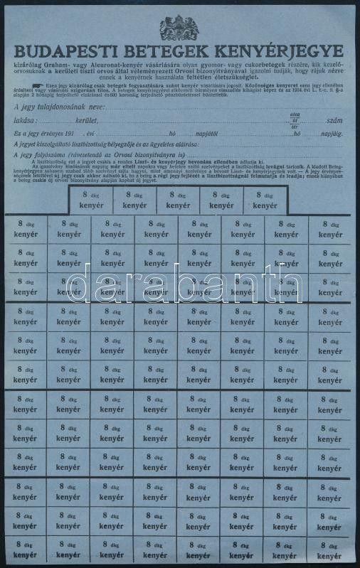 cca 1915 Budapesti Betegek Kenyérjegye