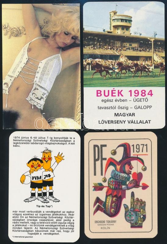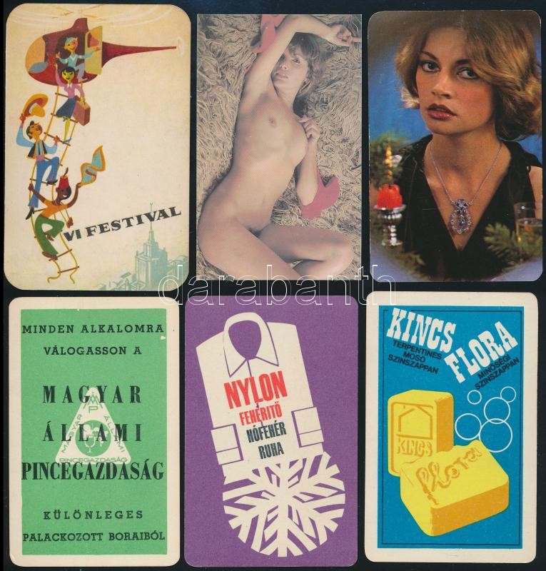 Leírás: 1957-2019, 15 db kártyanaptár különböző évekből, közötte 2 db erotikus