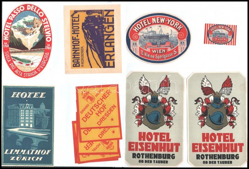Leírás: 43 db bőröndcímke (Grand Hotel Deutscher Hof Dresden, Grand Hotel Bagni Nouovi, Hotel New York Wien, stb.) Közte néhány egyforma.