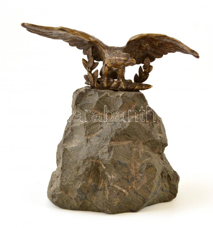 Leírás: Bronz turul szobor kő talapzaton 16 cm