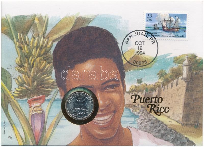 USA 1993. 25 Cents in envelope with stamp and cancellation, with German description C:UNC