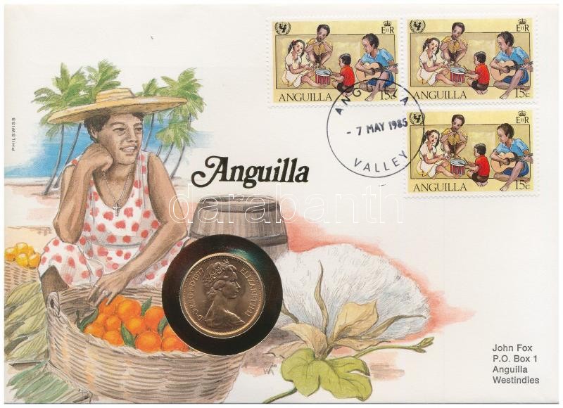 Anguilla 1977. 2 Pence in envelope with stamp and cancellation, with German description C:UNC