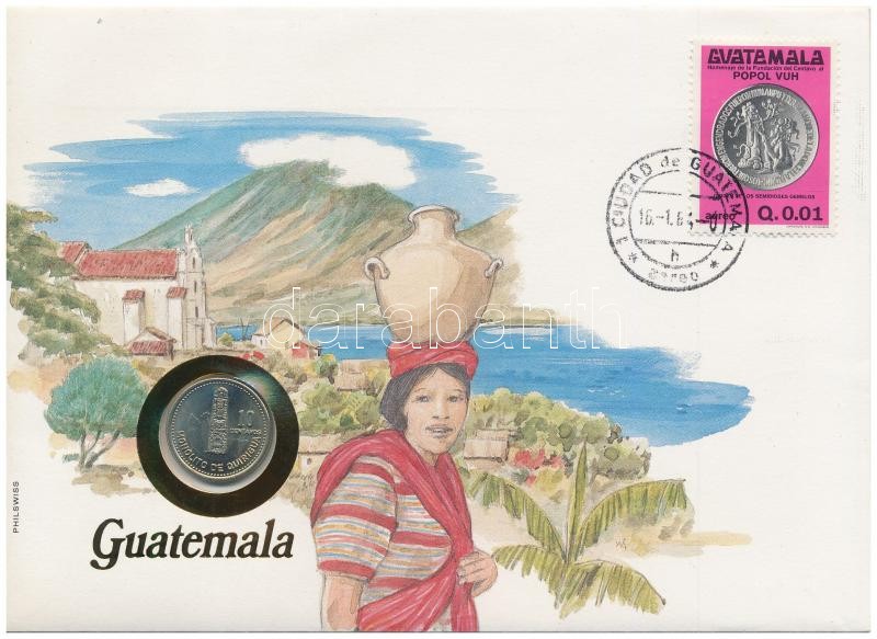 Guatemala 1981. 10c felbélyegzett borítékban, bélyegzéssel, német nyelvű leírással T:1 Guatemala 1981. 10 Centavos in envelope with stamp and cancellation, with German description C:UNC