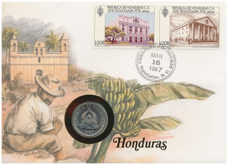 Honduras 1980. 10 Centavos in envelope with stamp and cancellation, with German description C:UNC