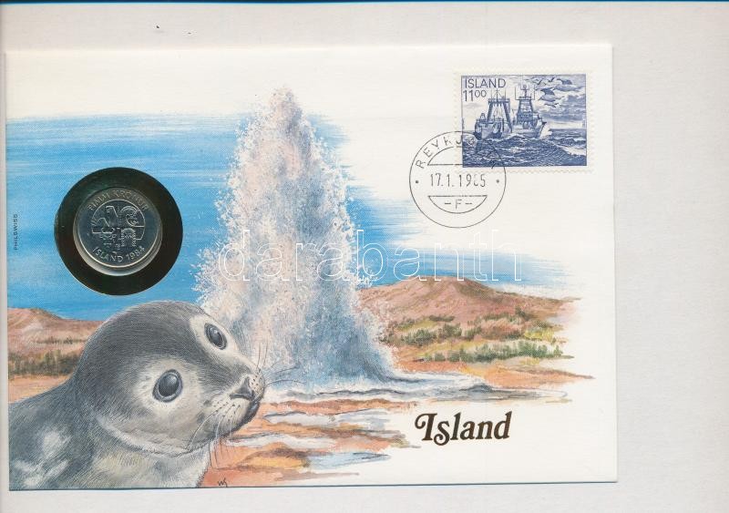 Izland 1984. 5Kr, felbélyegzett borítékban, bélyegzéssel, német nyelvű leírással T:1,1- patina