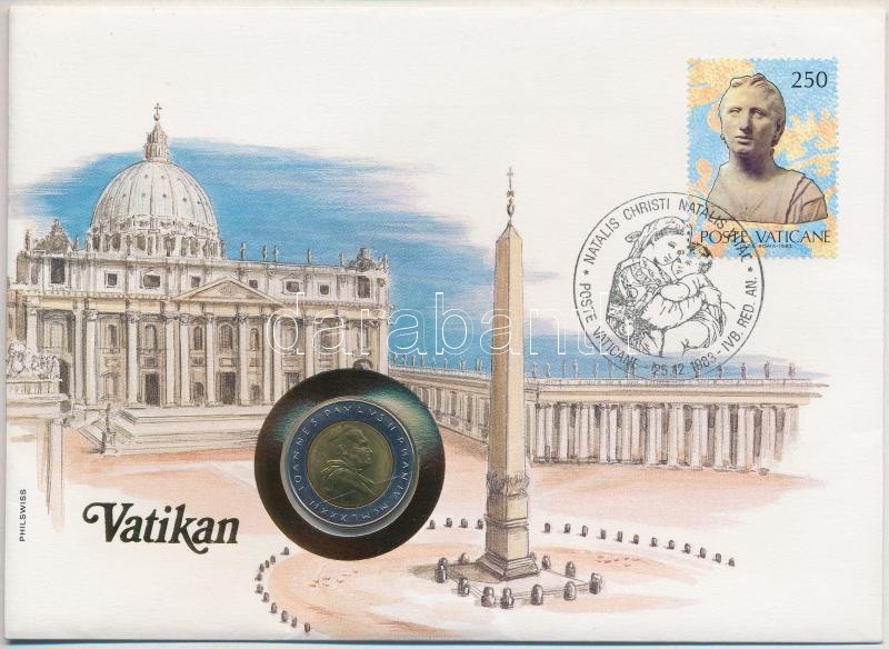 Vatican 1982. 500 Lire in envelope with stamp and cancellation, with German description C:UNC