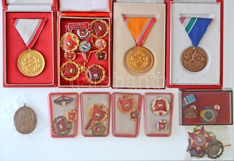 ~25db-os vegyes, főleg magyar szocialista jelvényekből és kitüntetésekből álló tétel, közte még Románia ~1906. "I. Károly" emlékérem szalag nélkül (31x42mm) T:vegyes