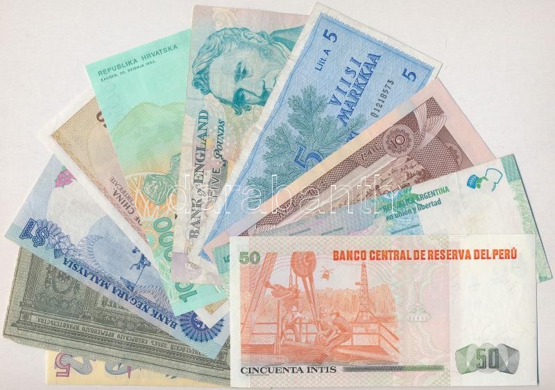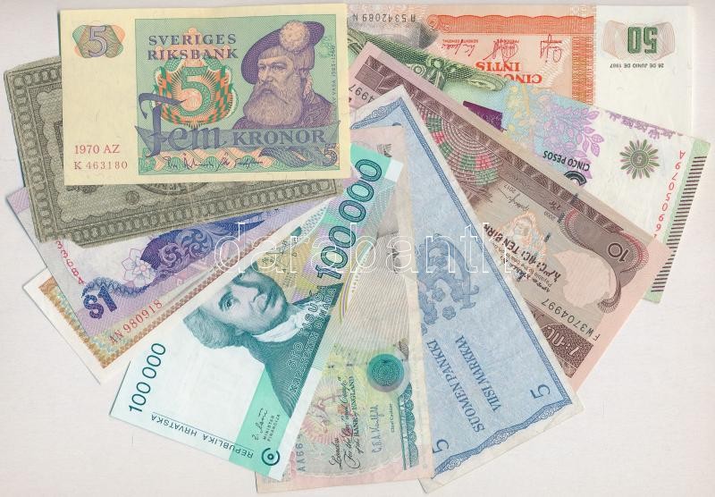 10db-os vegyes külföldi bankjegy tétel, közte Finnország, Svédország, Nagy-Britannia T:I-III-