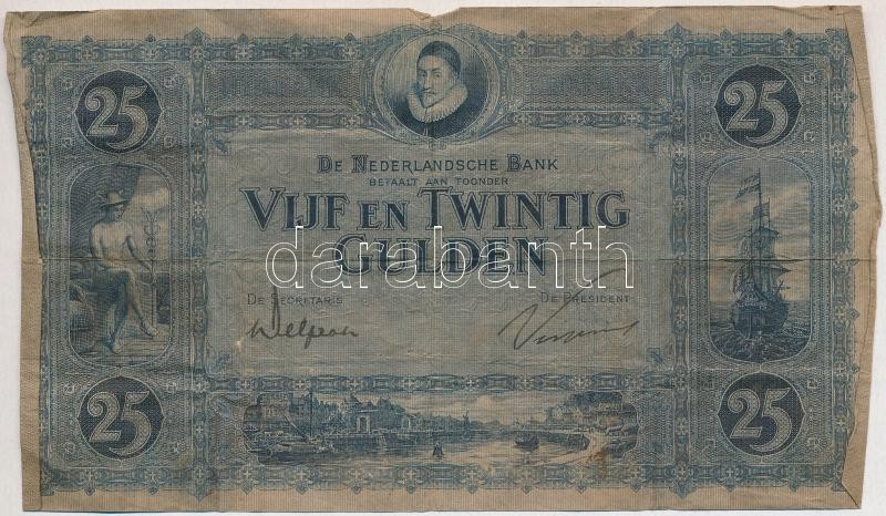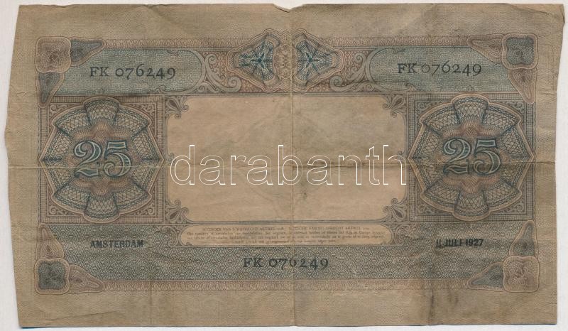Kr... https://www.darabanth.com/hu/359-Gyorsarveres/359.0/Numizmatika/Kulfoldi-bankjegyek~2000013/Hollandia-1927-25G-TIV-ly-Netherlands-1927-25-Gulden-CG-hole-Krause-45~II2065134