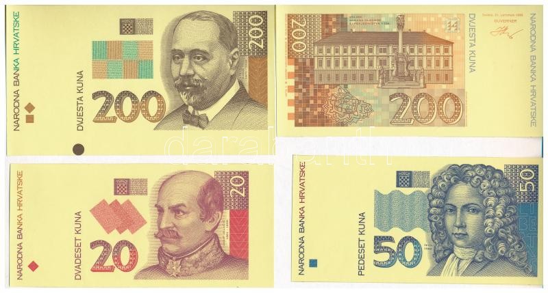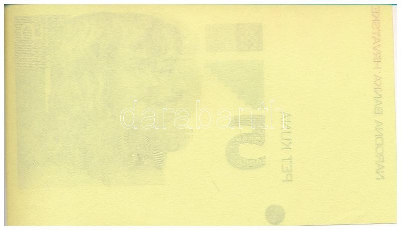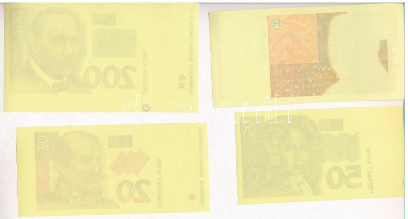 Horvátország 1993. 5K előlapi színpróba + 20K előlapi színpróba + 50K előlapi színpróba + 200K előlapi és hátlapi színpróba (2x) + 500K előlapi és hátlapi színpróba (2x) + 1000K előlapi és hátlapi színpróba, több darab ívszéllel. Összesen 9db. T:I- Croatia 1993. 5 Kuna front color trial + 20 Kuna front color trial + 50 Kuna front color trial + 200 Kuna front and back color trial (2x) + 500 Kuna front and back color trial (2x) + 1000 Kuna front and back color trial, some with sheet edge. A total of 9 pieces. C:AU