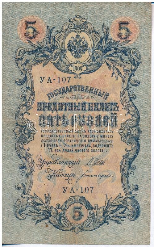 Russian Emp... https://www.darabanth.com/hu/359-Gyorsarveres/359.0/Numizmatika/Kulfoldi-bankjegyek~2000013/Orosz-Birodalom-1912-1917-1909-5R-Szign-Shipov-TIII-Russian-Empire-1912-1917-1909-5-Rubles~II2050803