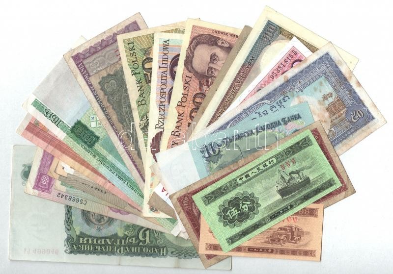 Leírás: Vegyes 22db-os külföldi papírpénz tétel, közte horvát, lengyel, bolgár bankjegyek is T:III,III-