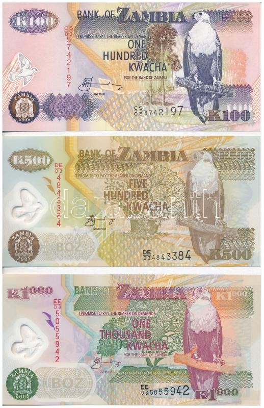 Zambia 2005-2008. 100 - 1000 ... https://www.darabanth.com/hu/359-Gyorsarveres/359.0/Numizmatika/Kulfoldi-bankjegyek~2000013/Zambia-2005-2008-100-1000K-3xklf-T1-Zambia-2005-2008-100-1000-Kwacha-3xdiff-CUNC~II2057977