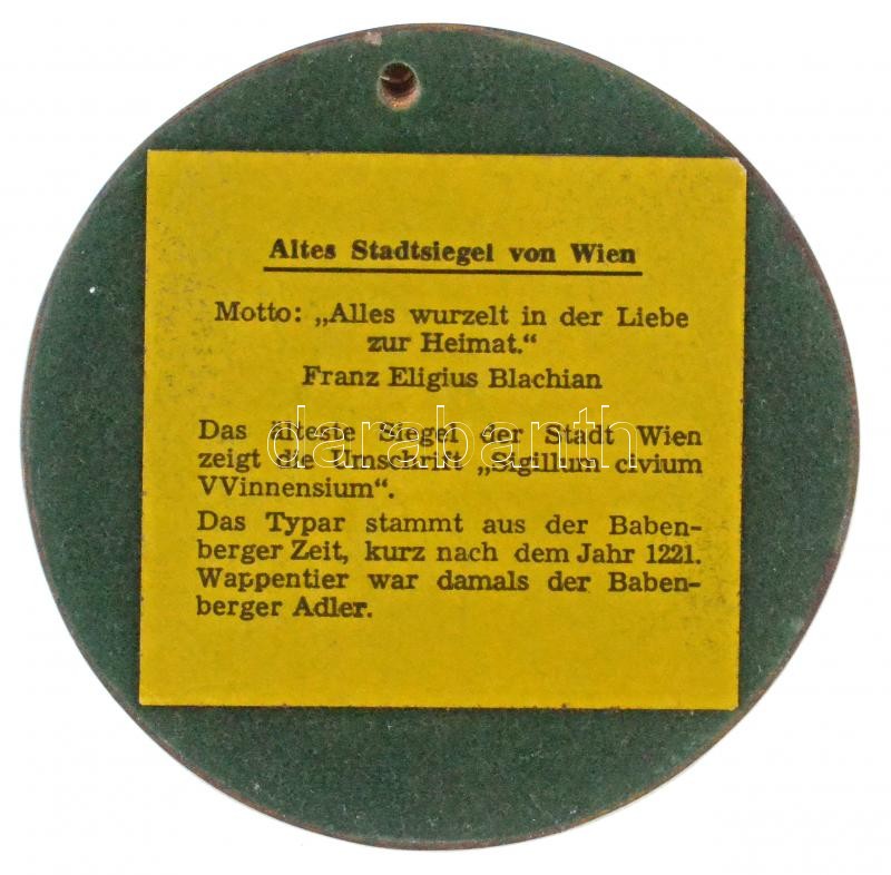 Leírás: Ausztria DN "Bécs város pecsétje" Br emlékplakett (92mm) T:2 patina