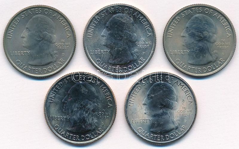 Amerikai Egyesült Államok 2011. 1/4$ "Nemzeti parkok - Gettysburg, Glacier, Olympic, Chickasaw, Vicksburg" Cu-Ni (5xklf) kapszulában T:1-,2 kis patina USA 2011. 1/4 Dollar "National Parks - Gettysburg, Glacier, Olympic, Chickasaw, Vicksburg" Cu-Ni (5xdiff) in capsule C:AU,XF small patina