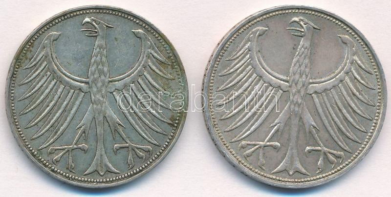 Leírás: NSZK 1951D 5M Ag + 1970J 5M Ag T:2,2- patina