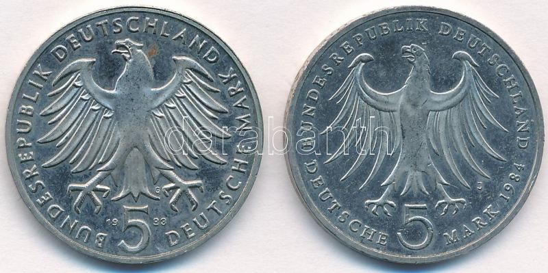 Leírás: NSZK 1983G 5M Cu-Ni "Luther Márton születésének 500. évfordulója" + 1984J 5M Cu-Ni "Felix Bartholdy születésének 175. évfordulója" T:1-,2