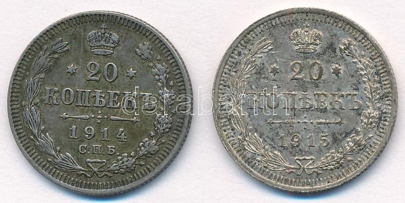 Leírás: Orosz Birodalom 1914. 20k Ag "II. Miklós" + 1915BC 20k Ag "II. Miklós" T:1-,2 patina