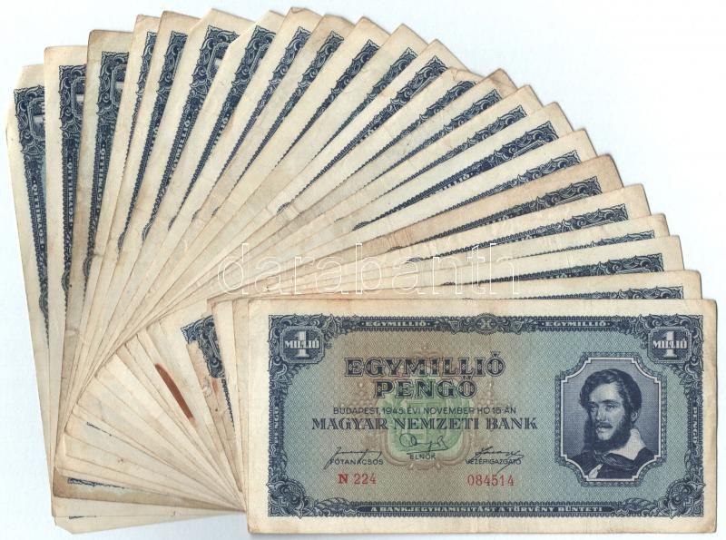 1945. 1.000.000P (23x) T:III Adamo P25 https://www.darabanth.com/hu/359-Gyorsarveres/359.0/Numizmatika/Magyar-bankjegyek~2000007/1945-1000000P-23x-TIII-Adamo-P25~II2066103