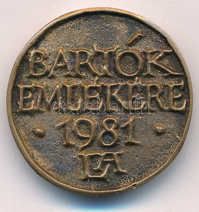 Leírás: Lapis András (1942-) 1981. "Bartók emlékére" kétoldalas, öntött Br emlékérem (27mm) T:1-