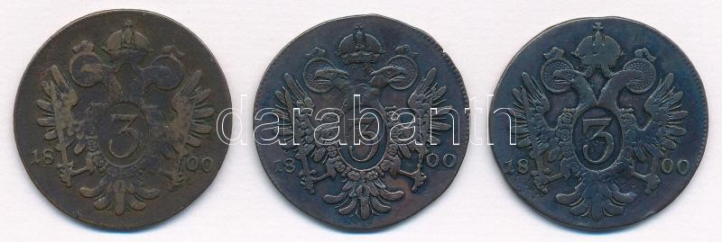 Leírás: 1800B 3kr Cu + 1800C 3kr Cu + 1800S 3kr Cu "I. Ferenc" T:2-,3 ph.