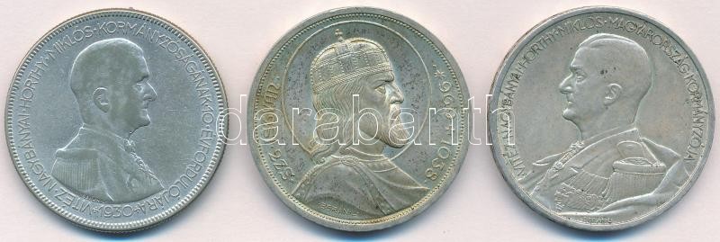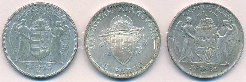 Leírás: 1930. 5P Ag "Horthy jobbra" + 1938. 5P Ag "Szent István" + 1939. 5P Ag "Horthy balra" T:1--3 patina