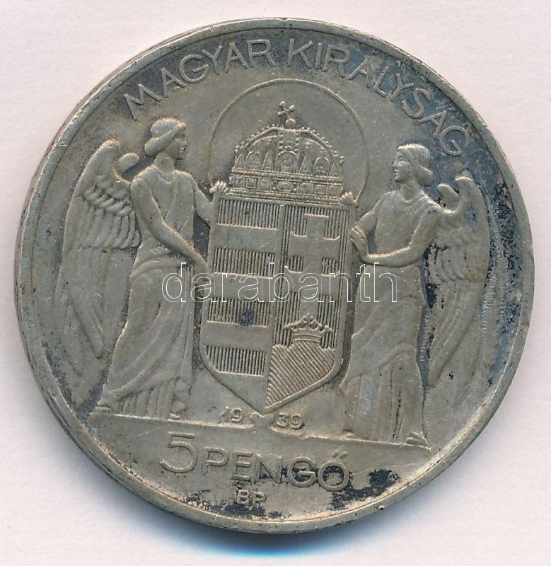 Leírás: 1939. 5P Ag "Horthy balra" T:2 patina
