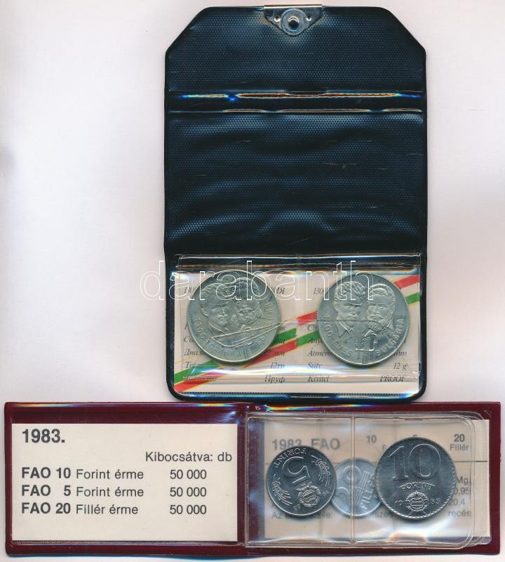 1981. 100Ft Cu-Ni-Zn + 5L Cu-Ni-Zn "Bulgária 1300 éves" magyar-bolgár közös kiadás, eredeti tokban, tanúsítvánnyal + 1983. 20f Al + 5Ft Ni + 10Ft Ni "FAO" sor, eredeti tokban tanúsítvánnyal T:BU,1 (eredetileg PP)