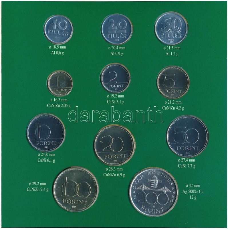 1995. 10f-200Ft (11xklf) forgalmi sor dísztokban, benne 200Ft Ag "... https://www.darabanth.com/hu/359-Gyorsarveres/359.0/Numizmatika/Magyar-es-magyar-verdejelu-fem-es-ezustpenzek~2000008/1995-10f-200Ft-11xklf-forgalmi-sor-disztokban-benne-200Ft-Ag-Deak-Magyarorszag-penzermC3~II2061511