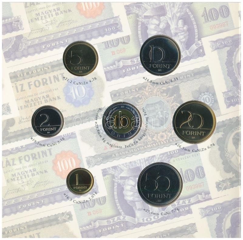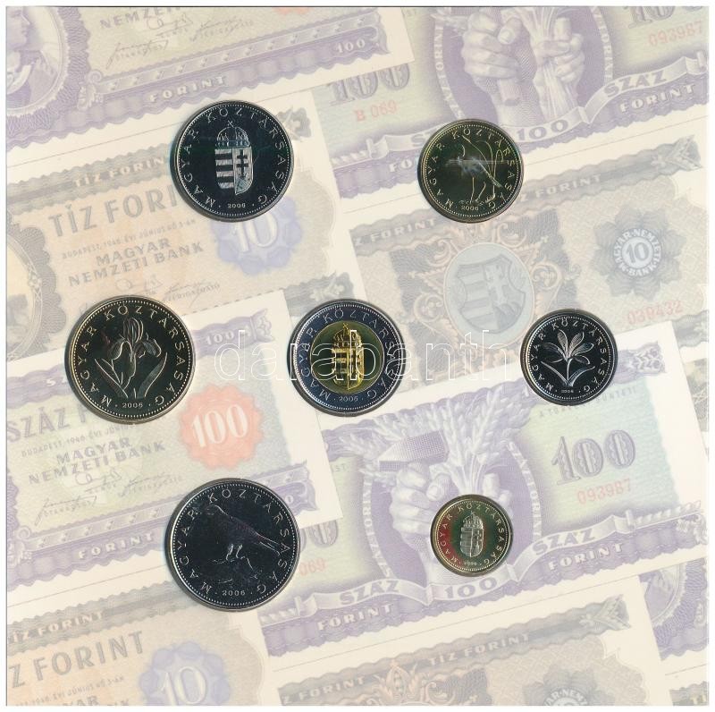 Leírás: 2006. 1Ft-100Ft (8xklf) forgalmi sor szettben, benne 1946-os 1Ft Ag "Hatvanéves a Forint" proof kivitelben T:BU patina Adamo FO38