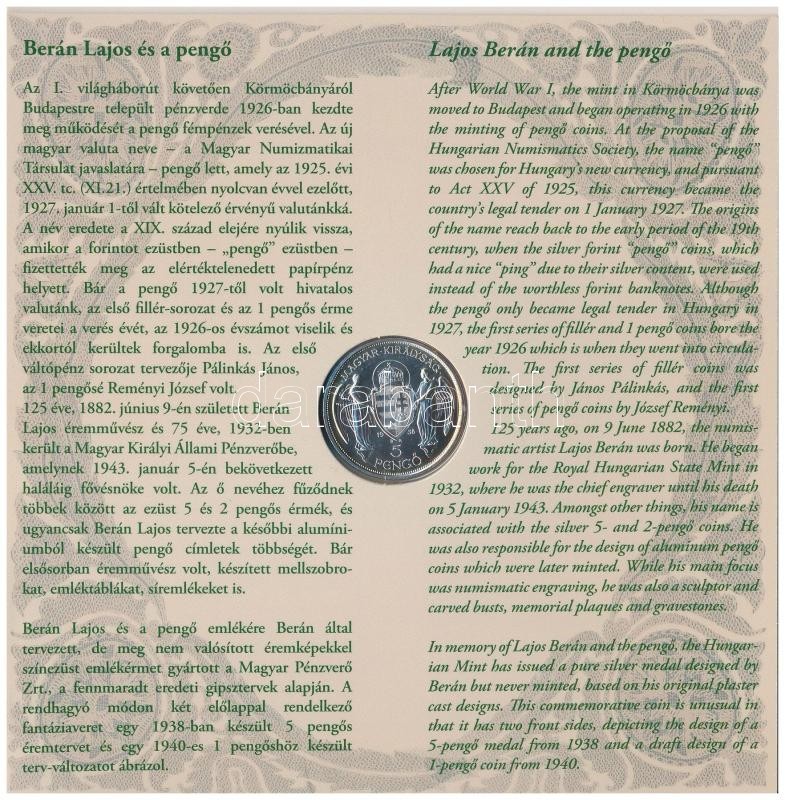 Leírás: 2007. 1Ft-100Ft (8xklf) "Berán Lajos és a pengő" forgalmi sor, benne "Berán Lajos és a pengő" Ag emlékérem (10g/0.999/27mm) T:PP