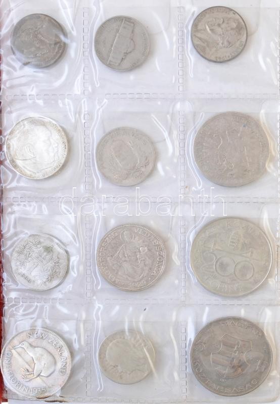 36db-os vegyes érme gyűjtemény albumban, főleg magyar darabok, 31db ezüstérmével, közte 1893KB 1K Ag "Ferenc József", Szlovákia 1941. 20K Ag "Cirill és Metód", Új-Zéland 1935. 1Fl Ag "V. György" T:1-,2,3 36pcs of various coins, mostly Hungarian, with 31pcs of silver, including 1893KB 1 Korona Ag "Franz Joseph", Slovakia 1941. 20 Korun Ag "St. Kyrill and St. Methodius", New Zealand 1935. 1 Florin Ag "George V" C:AU,XF,F