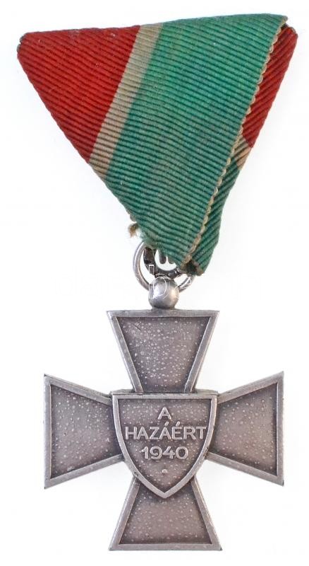 Leírás: 1940. "Nemzetvédelmi Kereszt / A Hazáért" ezüstözött Br kitüntetés, sérült mellszalaggal T:2