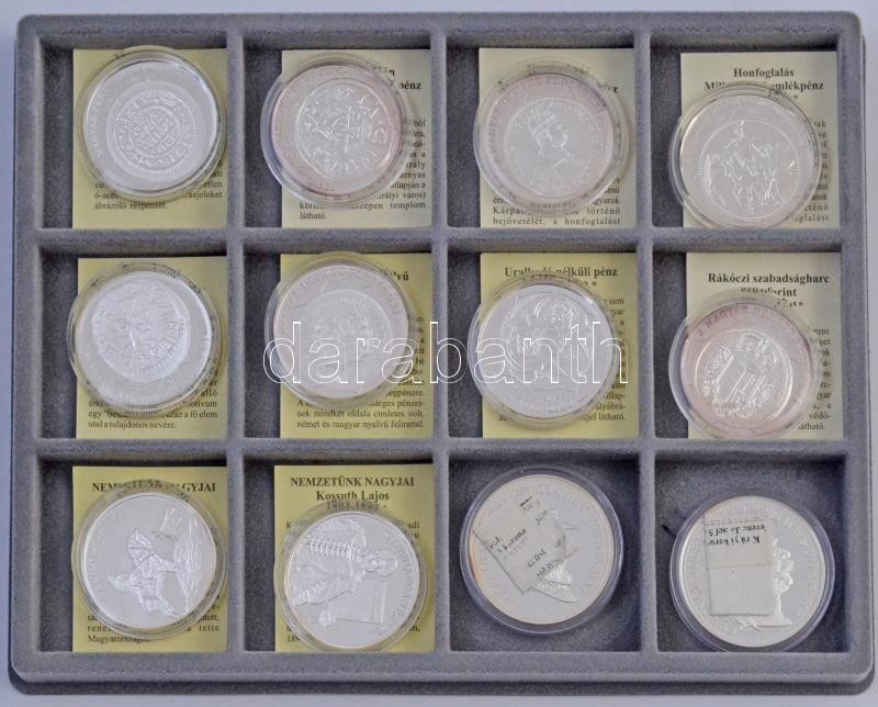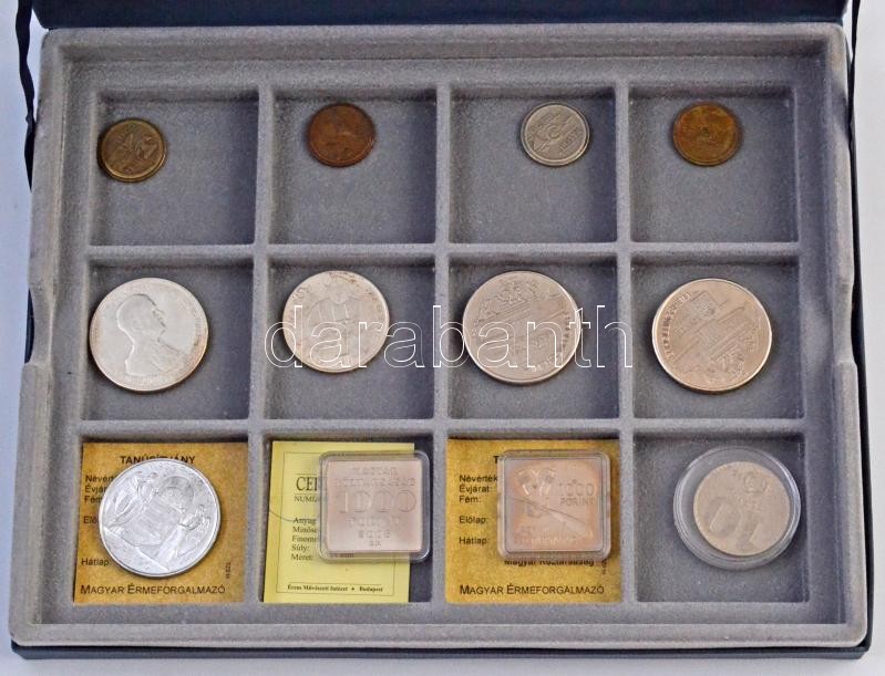 Leírás: 24db-os vegyes érme tétel, közte 14db ezüst, éremtartó kazettában, kivehető tálcával, benne "A Magyar Nemzet Pénzérméi" sorozatból 8db T:PP,2,2-