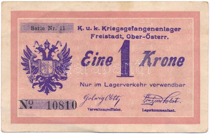 Austria / Freist... https://www.darabanth.com/hu/359-Gyorsarveres/359.0/Numizmatika/Papir-es-fem-szuksegpenzek~2000006/Ausztria-Freistadt-hadifogolytabor-7E1916-1K-TIII-Austria-Freistadt-POW-camp-7E1916-1-Krone-C~II2061454