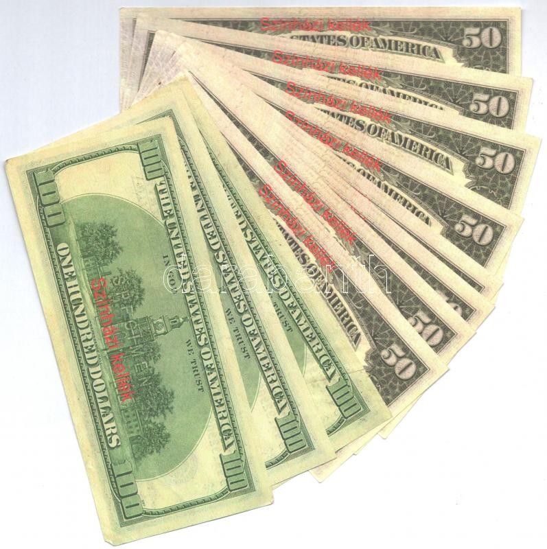 Leírás: DN "Színházi kellék" feliratú 50$ (8x)+ 100$ (3x) bankjegy másolatok T:I-III lyuk