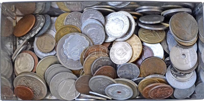 Leírás: ~200db külföldi és magyar vegyes érmetétel fém dobozban, nagyjából ~100 különféle országból T:vegyes