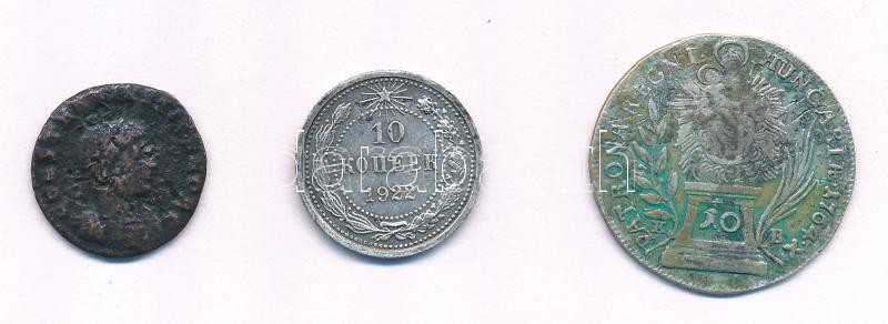 Leírás: DN azonosítatlan római Br érme + 1764KB 10kr Ag "Mária Terézia" + 1922. 10k Ag T:2-3-