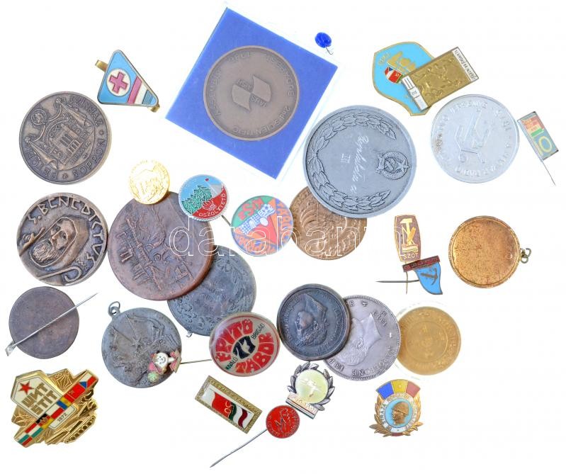 Leírás: Vegyes kis zacskónyi külföldi és magyar jelvény, emlékérem tétel T:vegyes