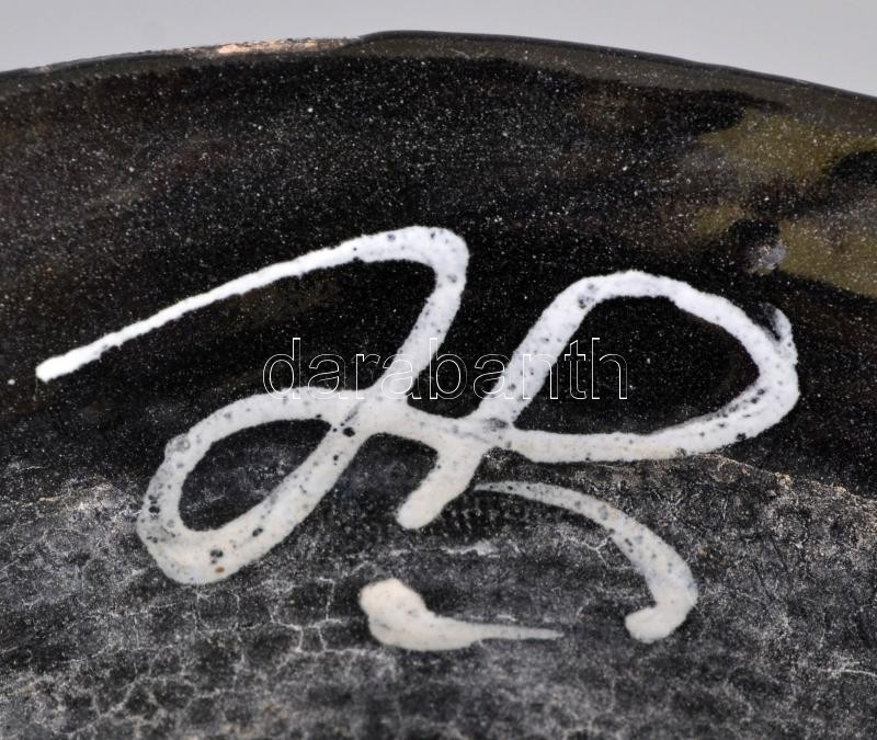 Leírás: Gorka Lívia (1925-2011): Függő kaspó. Festett mázas kerámia, jelzett, kopásnyomokkal, m: 11,5 cm, d:17,5 cm