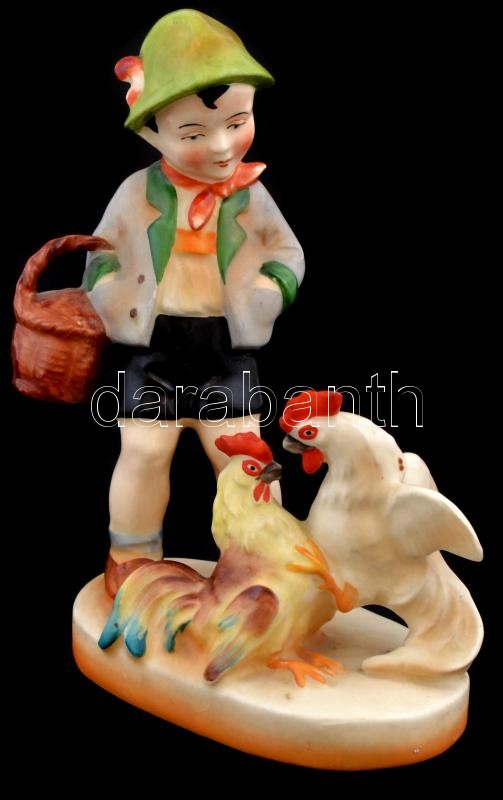 Leírás: Heinz kisfiú kakasokkal, kézzel festett, jelzett, hibátlan, m:18,5 cm