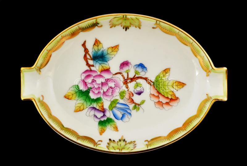 Leírás: Herendi Viktória mintás hamutálka, kézzel festett, jelzett, apró kopásnyomokkal, 13,5×9 cm