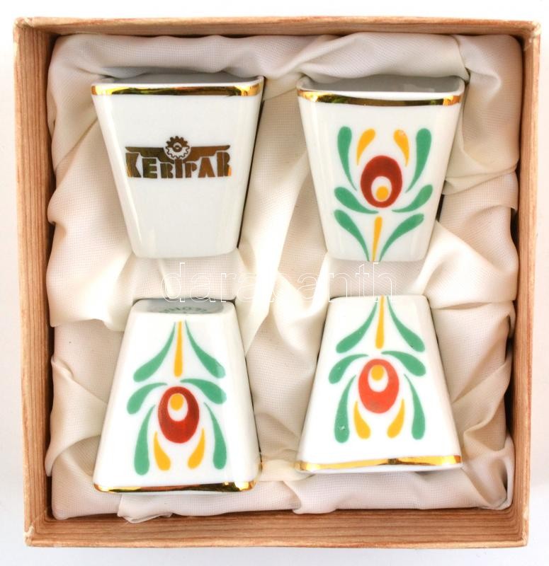 Leírás: Hollóházi Keripar kupicás poharak ( 4db), matricás, jelzett, díszdobozban, m:4 cm (4×)